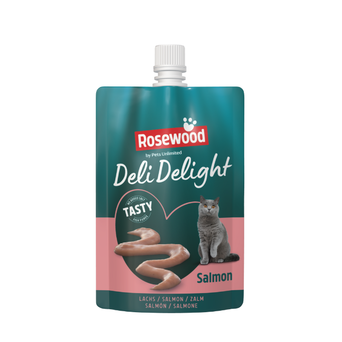 Γευστική πάστα με γεύση σολωμού για γάτες, με εύκολο πώμα σερβιρίσματος.