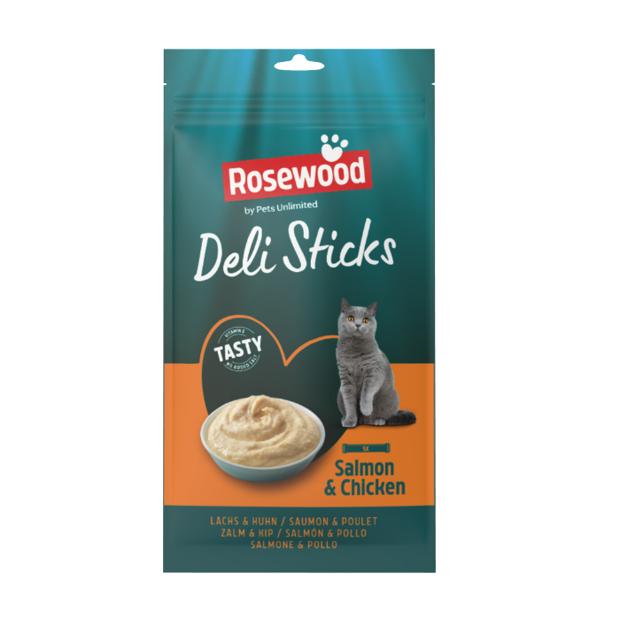 Σνακ σε στικς για ενήλικες γάτες άνω των 4 μηνών με γεύση σολωμό και κοτόπουλο.