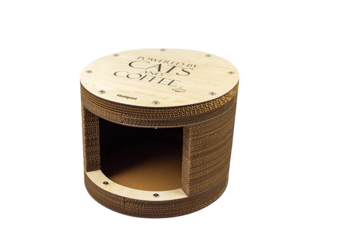 Ονυχοδρόμιο γάτας από πεπιεσμένο χαρτόνι με χρωματιστά μέρη από MDF. Είναι ένα προϊόν που θα ικανοποιήσει το φυσικό ένστικτο της γάτας να ξύνει τα νύχια της. Δεν βλάπτει τα νύχια και τα πόδια τους. Χρησιμοποιήθηκαν ανακυκλωμένα υλικά και οργανική κόλλα. Προστατεύει τα έπιπλα και τα χαλιά σας.