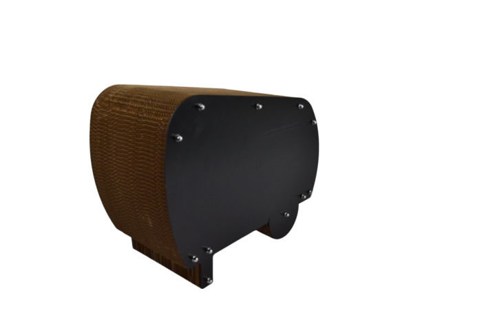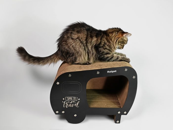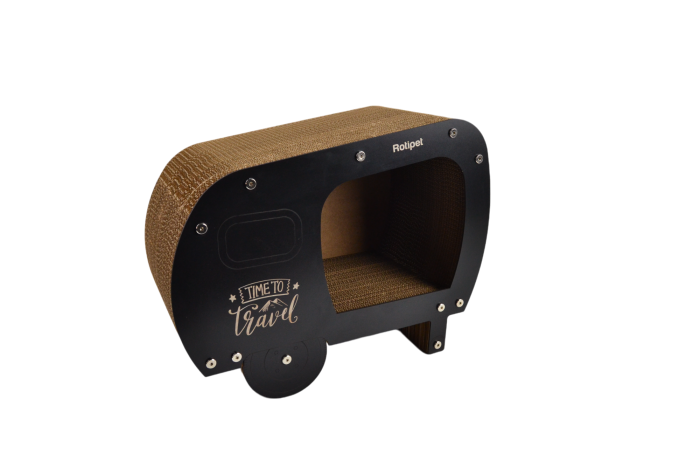 Ονυχοδρόμιο γάτας από πεπιεσμένο χαρτόνι με χρωματιστά μέρη από MDF. Είναι ένα προϊόν που θα ικανοποιήσει το φυσικό ένστικτο της γάτας να ξύνει τα νύχια της. Δεν βλάπτει τα νύχια και τα πόδια τους. Χρησιμοποιήθηκαν ανακυκλωμένα υλικά και οργανική κόλλα. Προστατεύει τα έπιπλα και τα χαλιά σας.