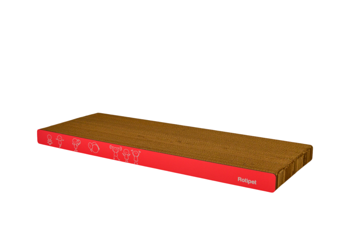 Ονυχοδρόμιο γάτας από πεπιεσμένο χαρτόνι με χρωματιστά μέρη από MDF. Είναι ένα προϊόν που θα ικανοποιήσει το φυσικό ένστικτο της γάτας να ξύνει τα νύχια της. Δεν βλάπτει τα νύχια και τα πόδια τους. Χρησιμοποιήθηκαν ανακυκλωμένα υλικά και οργανική κόλλα. Προστατεύει τα έπιπλα και τα χαλιά σας.