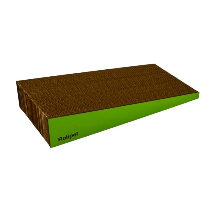Ονυχοδρόμιο γάτας από πεπιεσμένο χαρτόνι με χρωματιστά μέρη από MDF. Είναι ένα προϊόν που θα ικανοποιήσει το φυσικό ένστικτο της γάτας να ξύνει τα νύχια της. Δεν βλάπτει τα νύχια και τα πόδια τους. Χρησιμοποιήθηκαν ανακυκλωμένα υλικά και οργανική κόλλα. Προστατεύει τα έπιπλα και τα χαλιά σας.