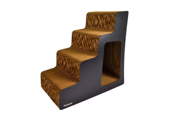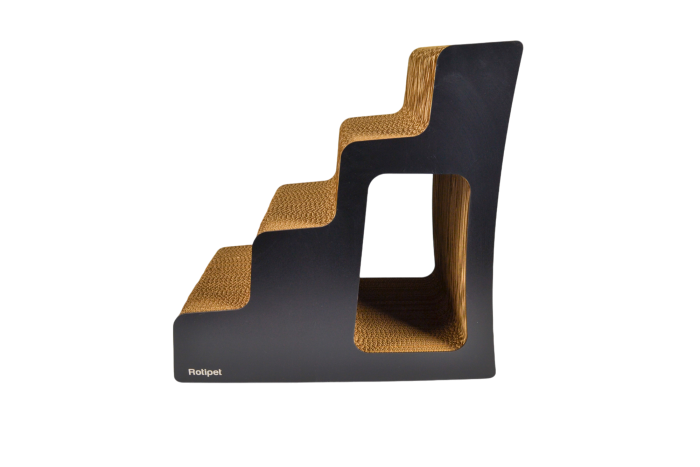 Ονυχοδρόμιο γάτας από πεπιεσμένο χαρτόνι με χρωματιστά μέρη από MDF. Είναι ένα προϊόν που θα ικανοποιήσει το φυσικό ένστικτο της γάτας να ξύνει τα νύχια της. Δεν βλάπτει τα νύχια και τα πόδια τους. Χρησιμοποιήθηκαν ανακυκλωμένα υλικά και οργανική κόλλα. Προστατεύει τα έπιπλα και τα χαλιά σας.