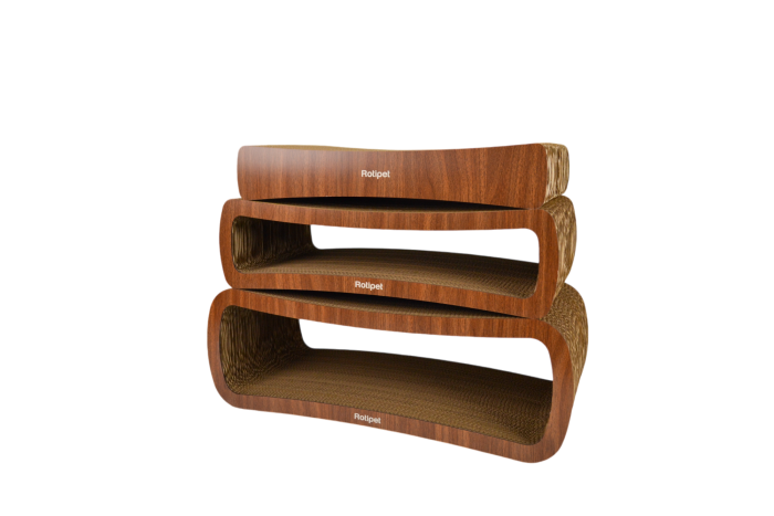Ονυχοδρόμιο γάτας από πεπιεσμένο χαρτόνι με χρωματιστά μέρη από MDF. Είναι ένα προϊόν που θα ικανοποιήσει το φυσικό ένστικτο της γάτας να ξύνει τα νύχια της. Δεν βλάπτει τα νύχια και τα πόδια τους. Χρησιμοποιήθηκαν ανακυκλωμένα υλικά και οργανική κόλλα. Προστατεύει τα έπιπλα και τα χαλιά σας.