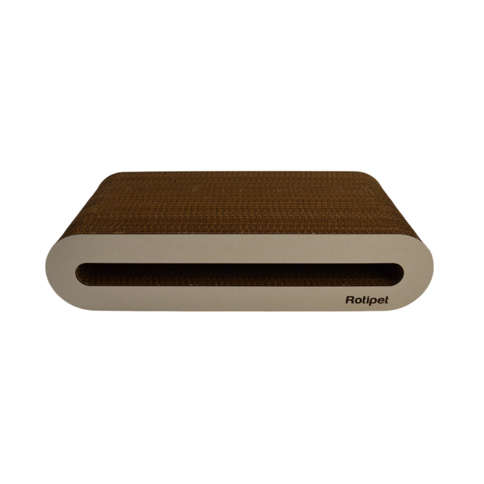 Ονυχοδρόμιο γάτας από πεπιεσμένο χαρτόνι με χρωματιστά μέρη από MDF. Είναι ένα προϊόν που θα ικανοποιήσει το φυσικό ένστικτο της γάτας να ξύνει τα νύχια της. Δεν βλάπτει τα νύχια και τα πόδια τους. Χρησιμοποιήθηκαν ανακυκλωμένα υλικά και οργανική κόλλα. Προστατεύει τα έπιπλα και τα χαλιά σας.