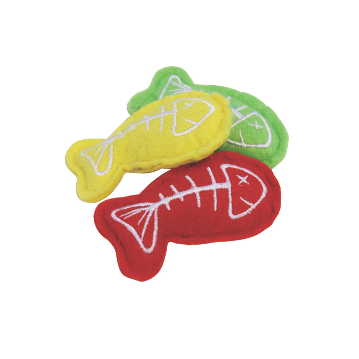Χρωματιστά ψάρια από τσόχα με μια μικρή ποσότητα από το φυτό catnip που λατρεύουν οι γάτες.