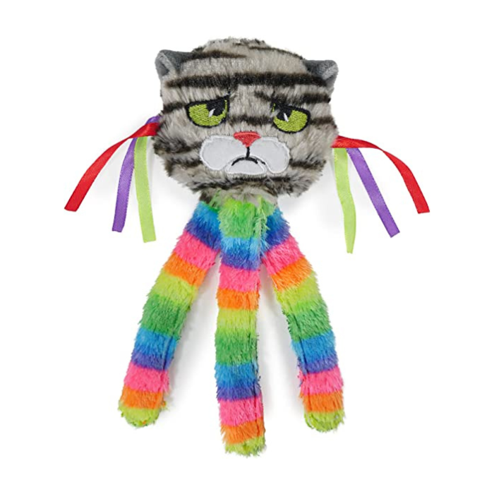 Παιχνίδι Cat Grab με απαλή βελούδινη ουρά ουράνιου τόξου φινιρισμένη με κορδέλες.