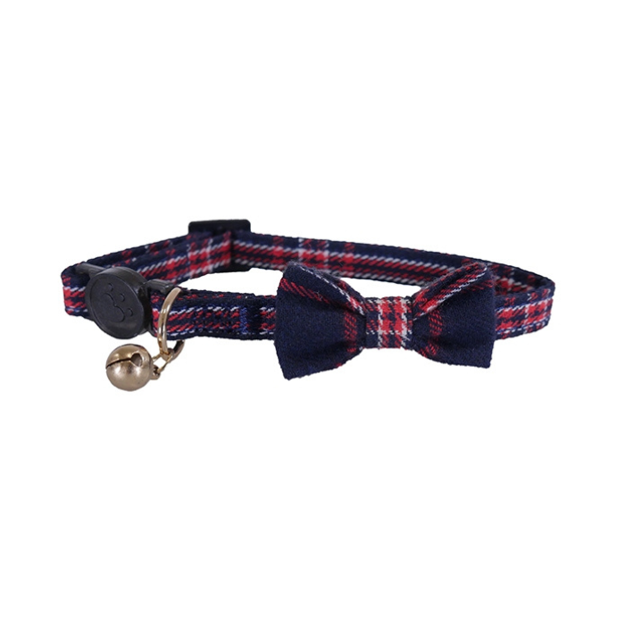 DESIGNER NAVY & RED TARTAN CAT COLLAR