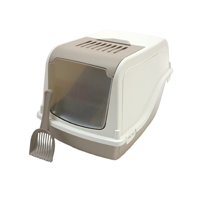Η συγκεκριμένη τουαλέτα για γάτες διαθέτει κουκούλα και το αντικαταστάσιμο φίλτρο άνθρακα βοηθούν στον έλεγχο των οσμών.Με ανύψωση προς τα εμπρός για ταχύτερη και ευκολότερη αφαίρεση των υγρών και στερεών απορριμμάτων .Με τέσσερα βελτιωμένα ενσωματωμένα κλιπ για να κρατούν ασφαλή την κουκούλα και τη βάση. Έχει και δικό της φτυαράκι καθαρισμού.