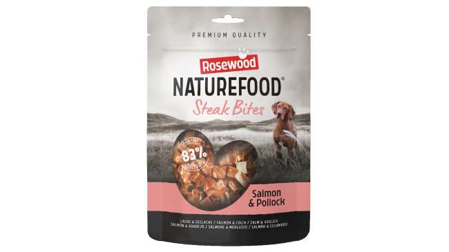 Το Salmon Steak Bites είναι πολύ νόστιμα απεριτίφ σολωμού και μπακαλάο. Είναι φυσικά αφυδατωμένος σολωμός και μπακαλάριος, εξαιρετικά θρεπτικά και ορεκτικά. Κατάλληλο για σκύλους με αλλεργίες ή δυσανεξίες.