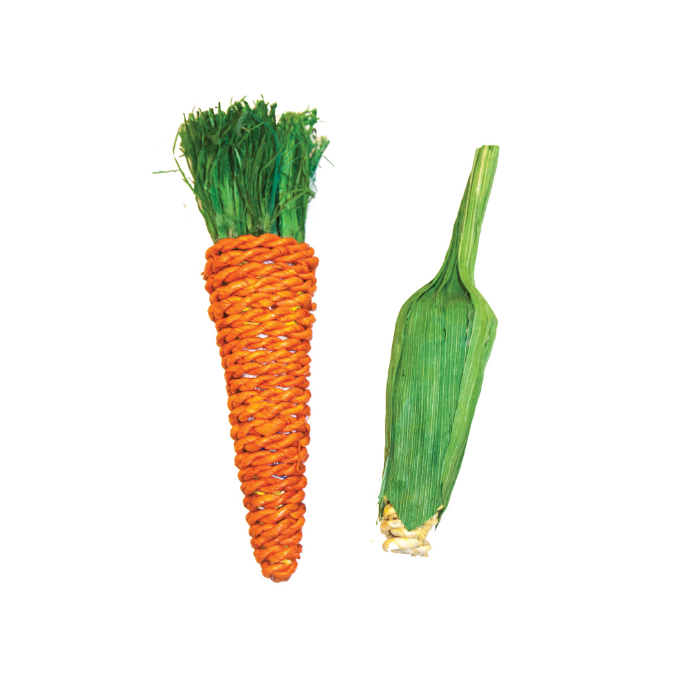 Τα Carrot & Corn Chew Toy είναι παιχνίδια σε σχήμα καρότου και καλαμποκιού σε λαμπερά χρώματα, ασφαλή για ροκάνισμα. Αυτά τα παιχνίδια δίνουν στους ιδιοκτήτες τρωκτικών την ευκαιρία να προσφέρουν στο κατοικίδιό τους ευχάριστη απασχόληση. Φτιαγμένα από φυσικά υλικά με μη τοξικές βαφές, είναι ασφαλή και διασκεδαστικά για τα τρωκτικά.