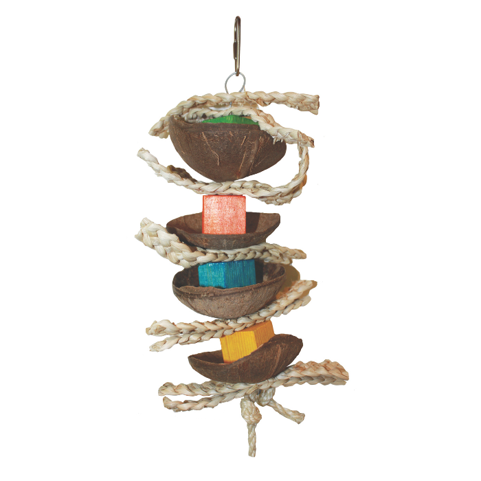 To Chinchilla Coco Fun είναι ένα κρεμαστό παιχνίδι για τσιντσιλά, 100% από φυσικά υλικά, ξύλο, φλοιούς καρύδας και σχοινί. Για ατέλειωτες ώρες διασκέδασης και δραστηριότητας, βοηθάει επίσης και στην υγιεινή των δοντιών αφού τα τσιντσιλά λατρεύουν να το μασούν. Το τέλειο παιχνίδι!