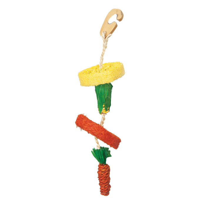 Μια διασκεδαστική συλλογή από παιχνίδια με λαμπερά χρώματα, ασφαλή για ροκάνισμα. Το Natural Loofah Hanging Toy δίνει στους ιδιοκτήτες τρωκτικών την ευκαιρία να προσφέρουν στο κατοικίδιό τους ένα παιχνίδι για ευχάριστη απασχόληση. Αυτό το κρεμαστό παιχνίδι από φυσικά υλικά και λούφα με μη τοξικές βαφές, είναι ασφαλές και ιδανικό για τα τρωκτικά.