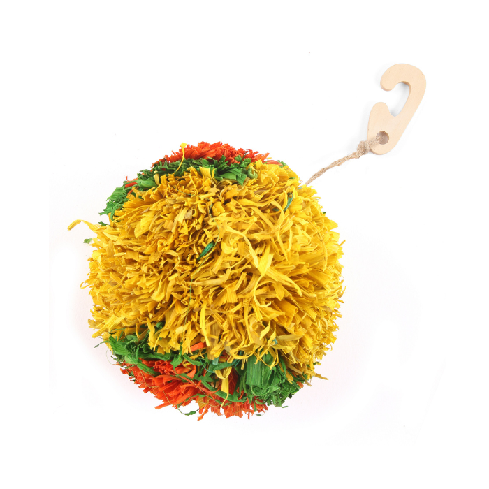 Ένα φωτεινό και πολύχρωμο παιχνίδι σε στυλ «pompom» που θα σας βοηθήσει να κρατήσετε το μικρό σας κατοικίδιο χαρούμενο. Κατασκευασμένο από 100% φυσικές βαφές φύλλων καλαμποκιού ,ενα υγιεινό παιχνίδι που θα βοηθήσει στην παροχή πνευματικής διέγερσης και είναι εξαιρετικό και για τα δόντια τους καθώς είναι ασφαλές να ροκανίζεται και να μασάται, συμβάλλοντας στην προώθηση υγιών δοντιών και ούλων.