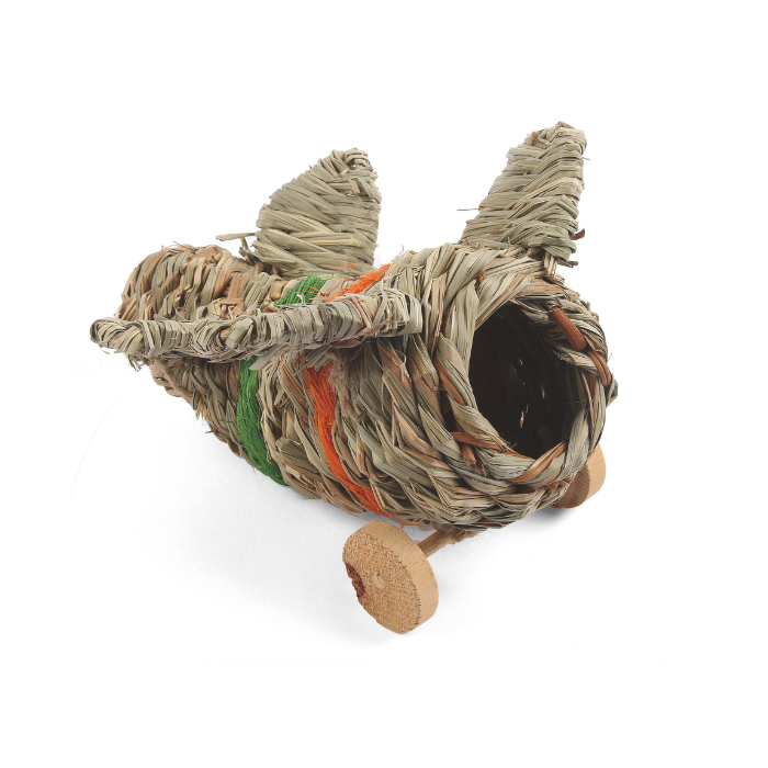 Το Airplane Hideaway είναι 100% απο φυσικό γρασίδι.Τέλειο φυσικό καταφύγιο για μικρά ζώα. Ενθαρρύνει τη φυσική συμπεριφορά τρυπήματος και φωλιάς. Μπορεί να γεμιστεί με σανό ή άλλα υλικά φωλιάς.